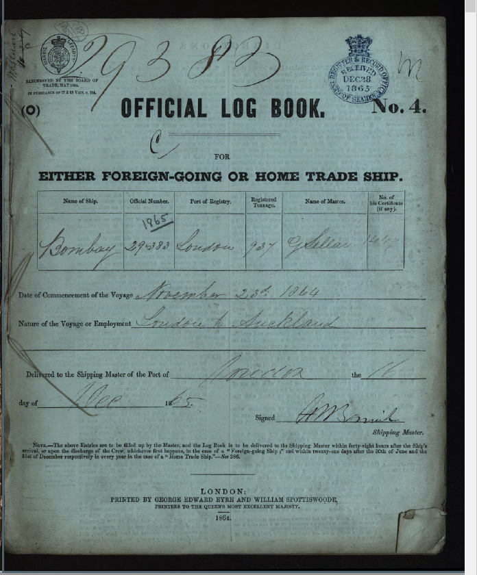 The crew of the Bombay on the 1864 voyage From London to Auckland, taking so many passengers that will settle in Bombay as part of the Waikato Immigration scheme and the ancestors of so many New Zealanders today consisted of a Captain, three mates, twenty one seamen, three apprentices, several other ranks and a Surgeon. Crew are as per below, and in known order of rank.