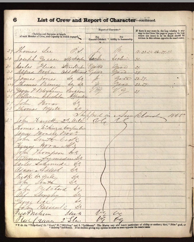 Bombay: Complete Crew list for 1864