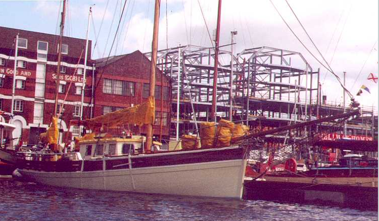 The Bombay was the first Ship built by the Vaux family, launching in January 1861 and completing fit out the following month. The family will earn a fine reputation for boat building, and will construct many fine Schooners, Barges and of course larger sailing Ships like the Bombay. The last recorded vessel built in the Yard by the Vaux’s was the Barge Dunkerque in 1894. But the last known survival of a Ship built by the family would be the Auto Da Fe, meaning Act of Faith, she was used as a fishing boat up to 1953, almost 70 odd years, before becoming a vessel of pleasure, where she would become well known for her speed, winning several Regattas. Below is the Auto Da Fe, Pictured in 1999 in Ipswich, England.