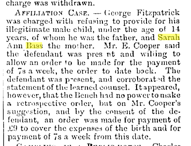 Sarah Bass was aged 4 years old at the time of registering for passage on the Bombay. No information is able to be found, any assistance would be greatly appreciated. (Possibly Sarah Jane Bass and married George Fitzpatrick in 1883)