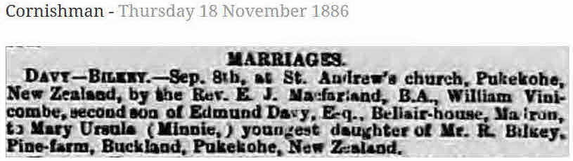 Sarah died in Morrinsville on the 13 of November,1913 and William on the 8th of August,1918.