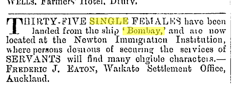 Annie Buttimore was aged 3 years old at the time of registering for passage on the Bombay. Ann was born in Lislee, County Cork, Ireland, on the 2nd of July,1861. She will go on to marry Albert Edward Fenton in 1890 and moved to 17 Church Street, Ponsonby, Auckland.