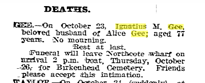 Herbert Ignatius Gee. Herbert was born on the 9th of November, 1873 and married Florence Amelia Baker in 1901.