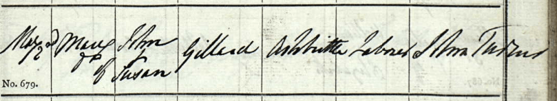 Mary Gillard was aged 17 years old at time of registering passage for the Bombay. Mary was born in 1847 and baptized in May of that year, Mary is the twin to John.