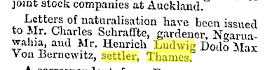 Soon after arriving to New Zealand, Mary married Charles “Karl” Heinrich Ludwig on the 4th of July,1865. Karl was from Danzig, in Prussia, Germany, and had moved to the United States when he was 11. It is believed he served in the American Civil War, but further research is required. Karl was a early settler in the Thames area and worked as a Amalgamator, in later life he was Naturalized.