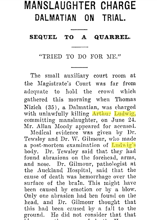 Arthur died on the 16th of June,1929 during a quarrel with Thomas Nizich, Thomas was acquitted of manslaughter .