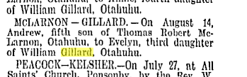Hugh Price Gillard. Hugh was born on the 5th of May,1884 in Flat Bush and married Anne Elizabeth Styles on the 8th of April,1912 in Paeroa, Waikato.
