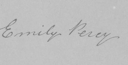 Emily Percy. Emily was born in 1861 in Tiverton, Devon. Emily married Robert Percy on the 18th of May,1897.