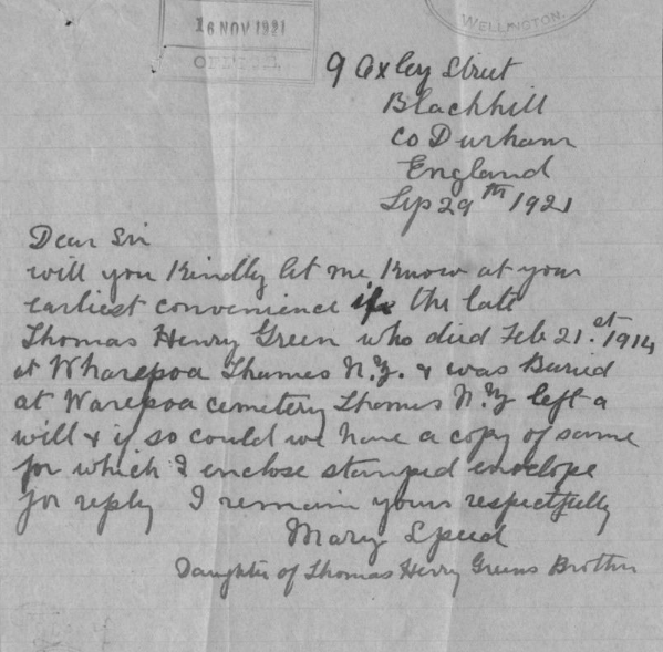 Mary died on the 24th of November,1919, but William had already remarried to Rachel Esther Babb or Warner, on the 26th of September,1917. William died on the 21st of February,1926 in Avondale and Mary on the 19th of April,1935 at 19 Highbury Street, Avondale, Auckland.