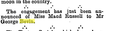 George Daniels Bevin. George was born on the 19th of August,1872 and married Maud Lucy Russell in 1899.