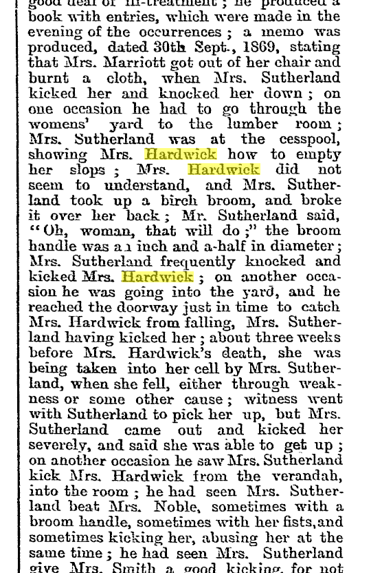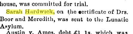 However it would appear the Asylum was badly run and Sarah mistreated, a investigation was launched and was reported in the below article.