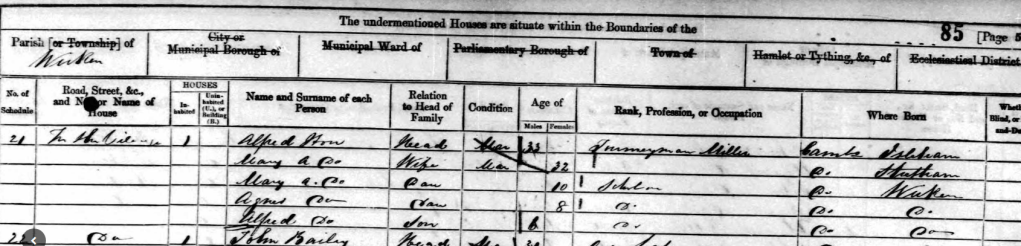 Alfred married Mary Ann Hobson on the 14th of April,1844 at the Ely Union Registry office in Cambridgeshire. Alfred engaged in Mining in New Zealand.