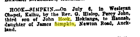 Hannah Hook. Hannah was born on the 12th of March,1883 and married Percy John Hook on the 6th of July,1904.