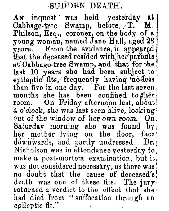 Jane died from a epileptic fit on the 25th of September,1871 and is buried at Symonds St Cemetery, Grafton, Auckland, New Zealand.