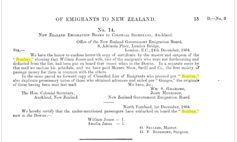 William Jones was aged 30 years old at time of registering passage for the Bombay. William and Amelia joined the Bombay at Gravesend.