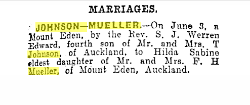 Edward Johnson. Edward was born on the 5th of December,1883 and married Bernice Elizabeth Roberts on the 12th of December,1909. Bernice died in 1928 and Edward remarried to Hilda Sabine Pasley Mueller in 1931. Edward died in Papa New Guinea on the 17th of December,1958.
