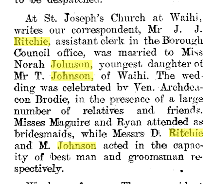 Honora Ritchie. Honora was born on the 28th of October,1891 and married Joseph James Ritchie on the 8th of April,1912.