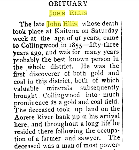 Eliza was born in Nelson in 1855 to John Ellis and Caroline Williams. John and Caroline were from Glamorgan, Wales and emigrated in 1848 to New Zealand on the ship Bernicia. John was the first to discover gold and coal in the Collingwood area.
