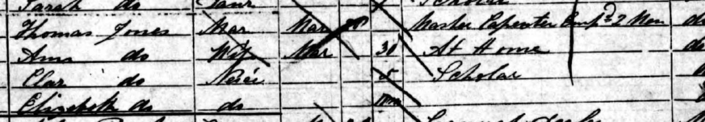 Clara Jones. Clara was born in 1845, but died on the 25th of May, 1855.