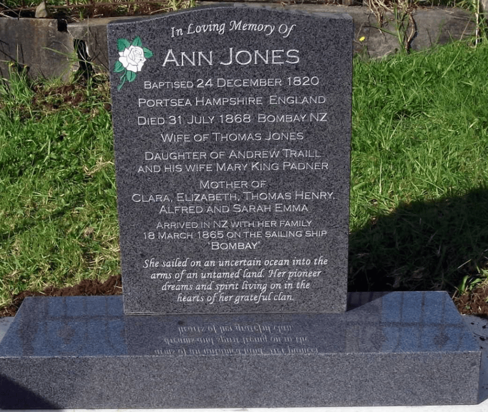 Anne Jones (Maiden name Traill) was aged 41 years old at time of registering passage for the Bombay. Ann as she preferred was born in Portsea, Hampshire to Andrew Traill and Mary King Padner on the 24th of December,1820. Her father Andrew was born in 1781 in Auchermuchty, Fife, Scotland and worked as a Millwright, Mary was born on the 1st of June,1783 in Portsea, Hampshire where Andrew met Mary and married on the 27th of July,1805.