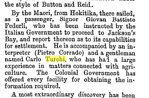 Carlo had came with a Mr Federli who had played a pivotal role in the founding of the Australian wine industry and stayed in Hokitika to marry Meta Theresa Willberg and advising the NZ Government that vines, olives and mulberries could be grown successfully in the county. https://timespanner.blogspot.com/2009/03/