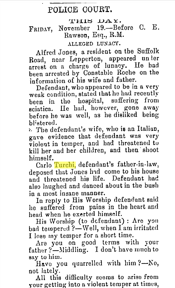 Thomas Henry Jones. Thomas was born on the 25th of October,1854 and married Louisa Santina Turchi on the 13th of January,1890.
