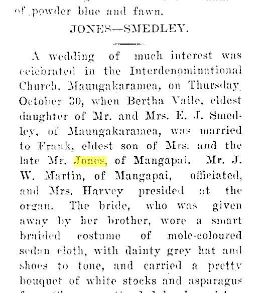 Frank Jones. Frank was born on the 22nd of March,1892 and married Bertha Smedley on the 30th of October,1924.
