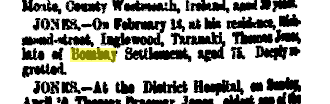 James Wilson Jones was aged 2 years old at time of registering passage for the Bombay.