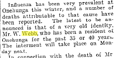 William died from Influenza on the 5th of October,1907 and Mary on the 28th of March,1918, with both buried at nearby Waikaraka Cemetery.