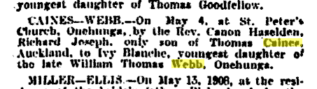 Ivy Blanche Caines. Ivy was born on the 12th of August,1884 and married Richard Joseph Caines on the 4th of May,1908.