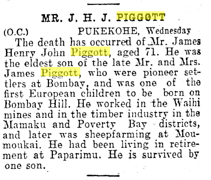 John died on the 7th of June,1920 and is buried at Pokeno, Margret died on the 14th of March,1937.