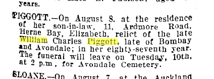 William died on the 3rd of December,1911 and is buried at Avondale Cemetery, Auckland.