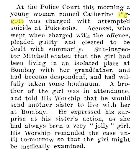 Catherine Margaret Piggott. Catherine was born on the 16th of June, 1882 and married Francisco Jones, son of fellow Bombay passenger Alfred Jones on the 4th of Febuary,1904. Catherine was bequeathed her grandfather’s John Parker property in Bombay. Catherine was charged, convicted and fined £25 for attempted suicide in 1902.