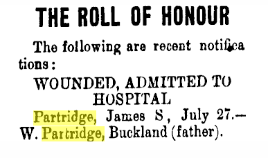 James Sydney Partridge was born on the 26th of October,1888. James served in WW1 with the 30th Reinforcements, Auckland Infantry Regiment (60191).