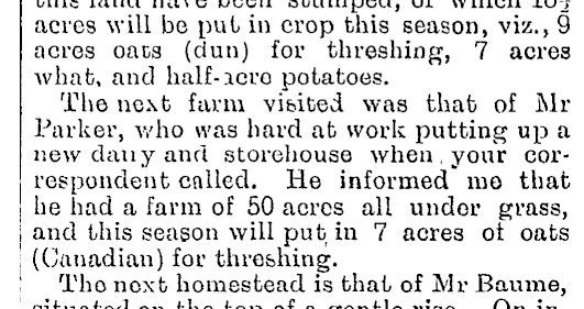 Leeson sadly died shortly after arriving, but the family will clear the land and build farm houses. The Parker family will contribute to the new community and by 1896 John and Elizabeth will be farming 50 acres.