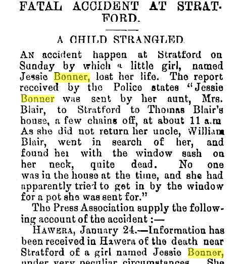 Helena Jessie Bonner. Jessie as she was known was born in 1878 but died accidently on the 23rd of January,1887, aged 9 years 6 months.