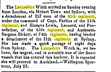 Thomas was from Ireland and served in the 65th Regiment arriving in NZ on the Lancaster Witch from Australia in July,1856 with a Detachment of 257 Officers and other Ranks