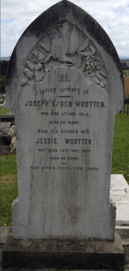 Jessie Constance Wootten. Jessie was born on the 11th of June,1885 in Bombay. Jessie trained as a teacher and received special mentions in her Teachers Examination in Art, Agriculture and History. Jessie was a Trainee Teacher at Grafton School and appointed Mistress at Pokeno School (South of Bombay) in 1905.