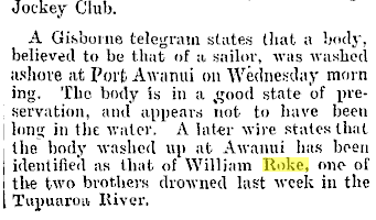 William Rooke. William was born on the 2nd of November,1879. Tragically William also drowned with his older brother in Poverty Bay in 1900.
