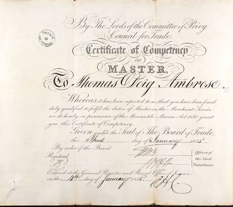 Age 43. Thomas was born on the 14th of May, 1821 in Arbroath, Angus Scotland to Henry Ambrose and Margret Dear. Thomas moved to Stepney in East London and married Phoebe Douglas Gandy on the 20th of October, 1857. Thomas and Phoebe had one known child, Thomas Edward Henry Ambrose born on the 30th of January, 1867. Thomas died in 1867 and buried on the 16th of November.